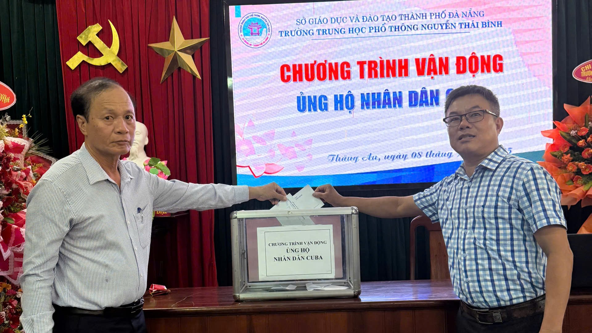 (Ảnh: Cán bộ, giáo viên, nhân viên Trường THPT Nguyễn Thái Bình ủng hộ nhân dân Cuba)