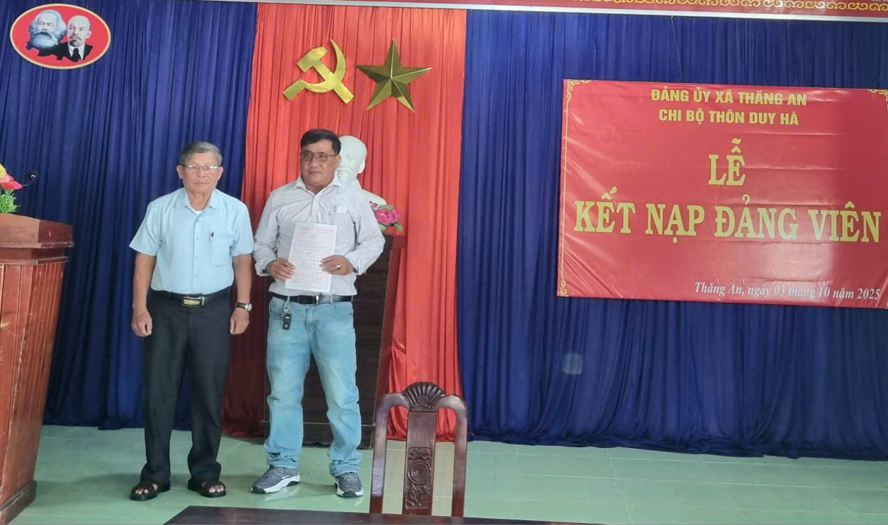 Dịp này, Chi bộ thôn Duy Hà, xã Thăng An đã tổ chức lễ kết nạp Đảng cho quần chúng Lê Nhi, thành viên Nghiệp đoàn nghề cá Bình Dương.