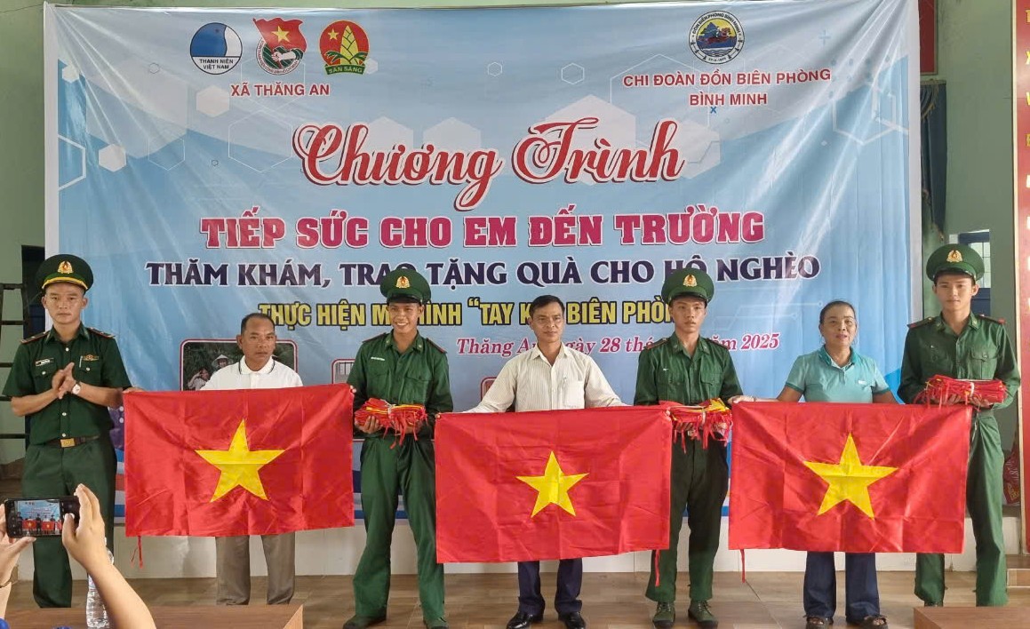 Theo đó, đông đảo cán bộ, chiến sĩ Đồn Biên phòng Bình Minh và thanh niên xã Thăng An triển khai các hoạt động trao tặng 70 lá cờ Tổ quốc để thực thay mới những lá cờ cũ đang treo trước cổng nhà các hộ gia đình nghèo của thôn Bình Tịnh và làm tuyến đường cờ Tổ quốc dài gần 500m tại thôn Bình Tuý.