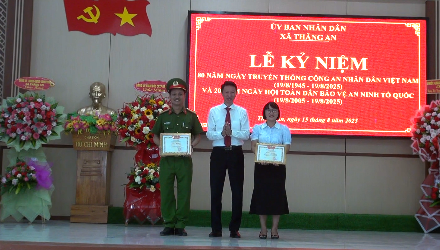 Dịp này, UBND xã Thăng An khen thưởng 2 tập thể, 10 cá nhân có thành tích tốt trong phong trào toàn dân bảo vệ an ninh Tổ quốc.
