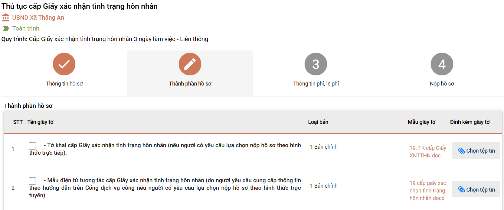 Bước 8: Tại mục Thàn phần hồ sơ bấm “Chon tệp tin” để đính kèm thành phần hồ sơ