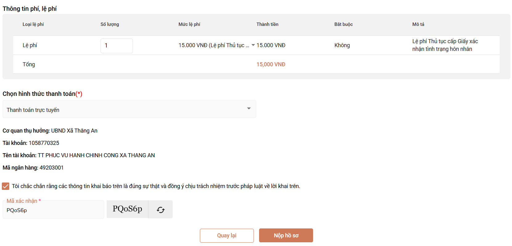 Bước 10. Tích chọn “ Tôi chắc chắn rằng…)-> Nhập [mã xác nhận] -> [Nộp hồ sơ]