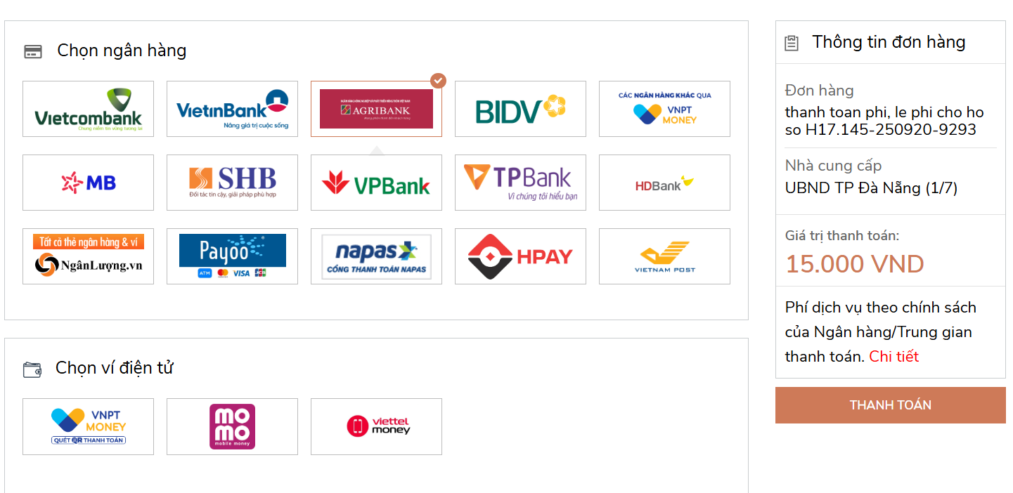 Bước 11: Chọn Ngân hàng mà bạn muốn dùng để thanh toán -> Thanh toán