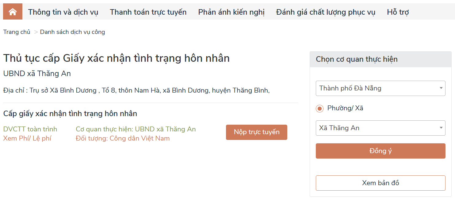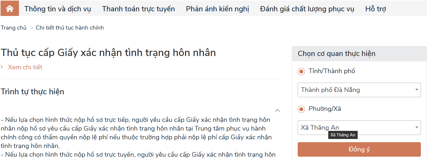 Bước 3: Tại tỉnh/ thành phố “ Thành phố Đà Nẵng” -> Phường/ xã chọn đơn vị phường/ xã nơi cứ trú cần nộp -> chọn [Đồng ý]