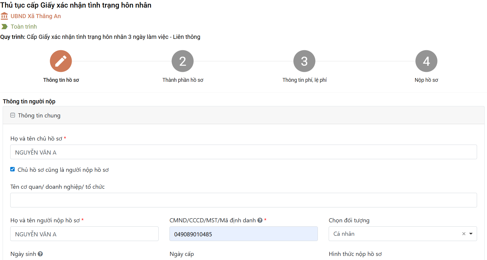 Trường hợp người nộp là chủ hồ sơ bấm nút [Chủ hồ sơ cũng là người nộp hồ sơ]