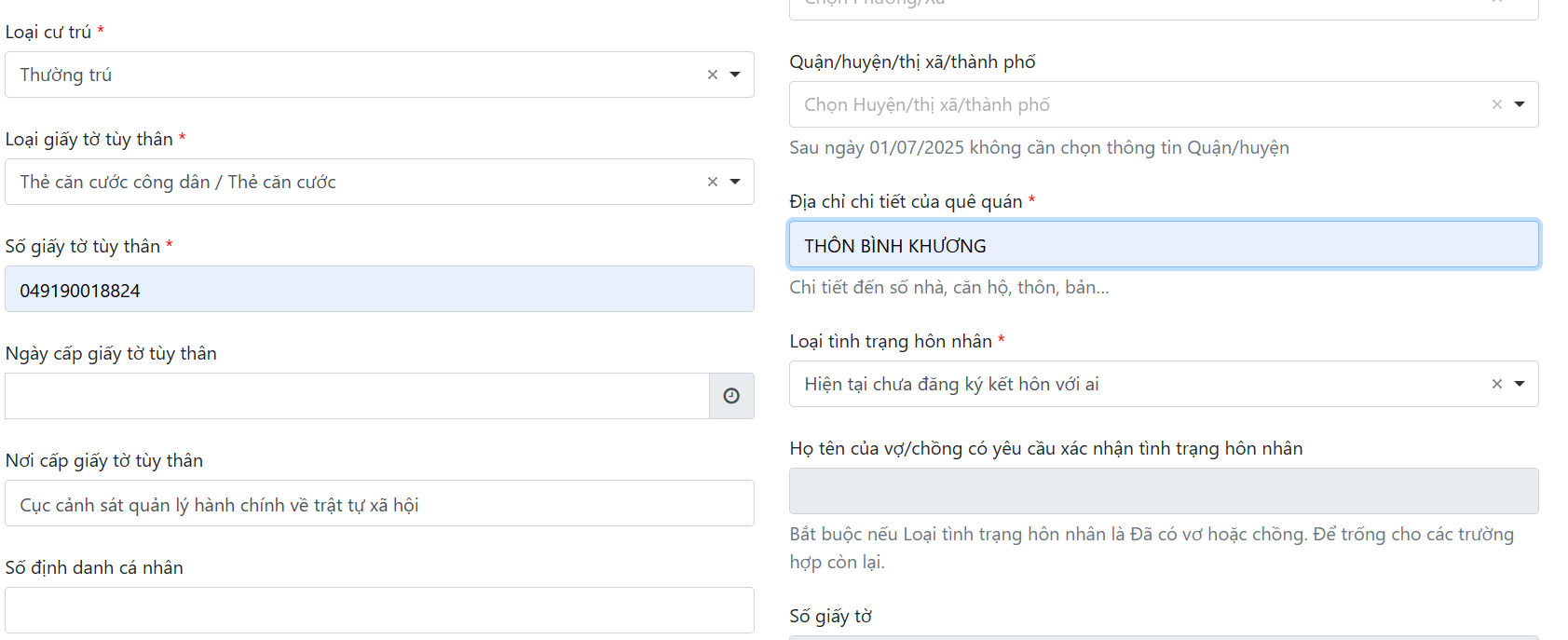 Bước 6: Thực hiện cập nhật thông tin các trường có đánh dấu (*) của “ Thông tin người nộp”