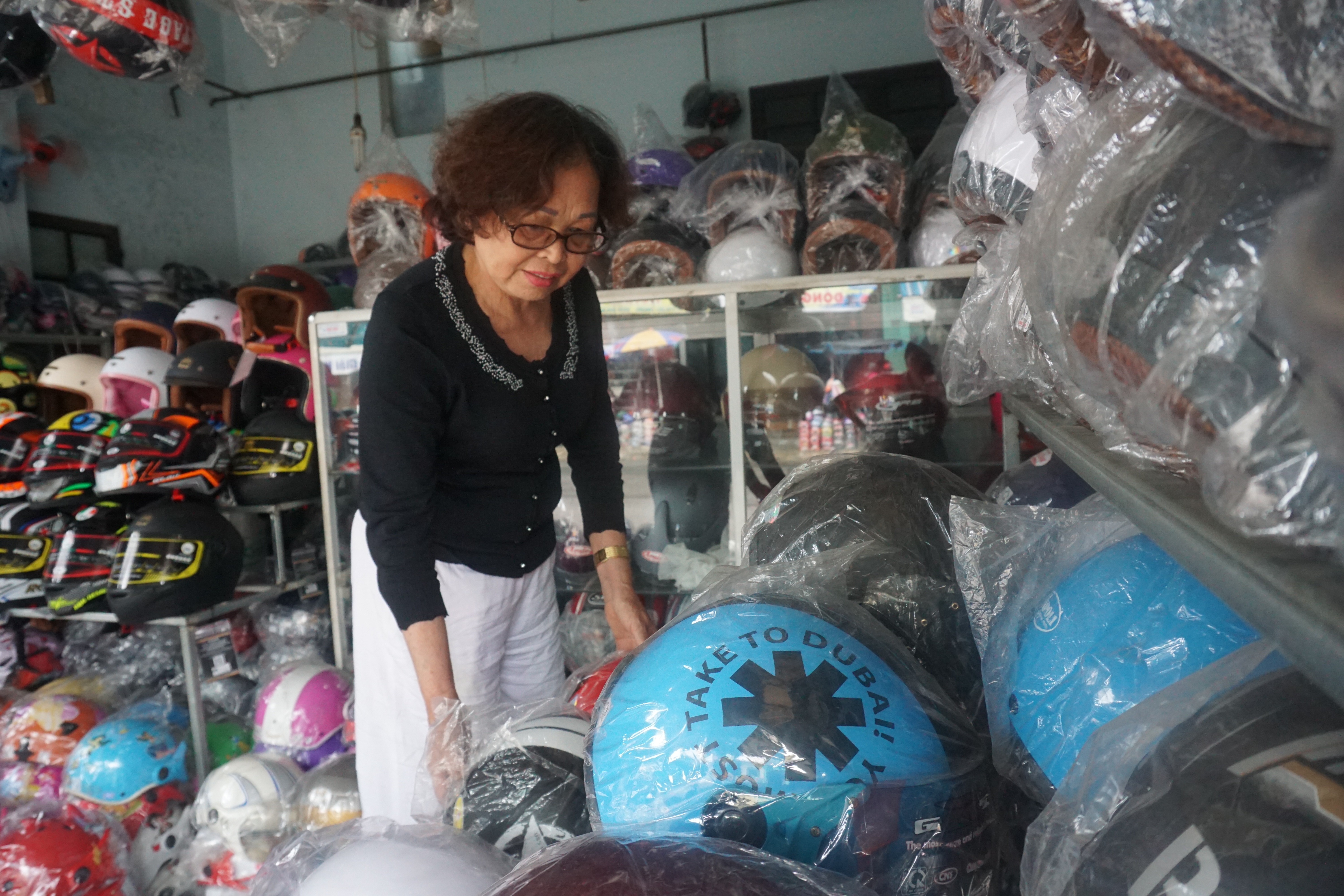 Nguồn thu chính của vợ chồng bà Trần Thị Hiền đều nhờ vào cửa hàng bán mũ bảo hiểm