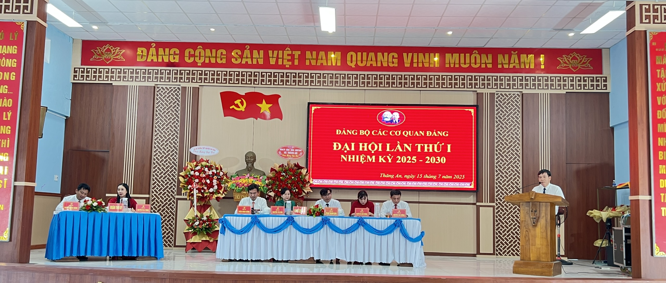 Đảng bộ các cơ quan Đảng xã Thăng An được thành lập theo Quyết định số 45-QĐ/ĐU, ngày 01/7/2025 của Ban Thường vụ Đảng ủy xã Thăng An, là mô hình tổ chức đảng hoàn toàn mới và ra đời trong bối cảnh cả nước đang quyết liệt thực hiện “cuộc cách mạng” về tổ chức bộ máy nhằm xây dựng hệ thống chính trị thật sự tinh - gọn - mạnh - hiệu năng - hiệu lực - hiệu quả. Hiện nay, Đảng bộ có 5 Chi bộ trực thuộc với 46 đảng viên.