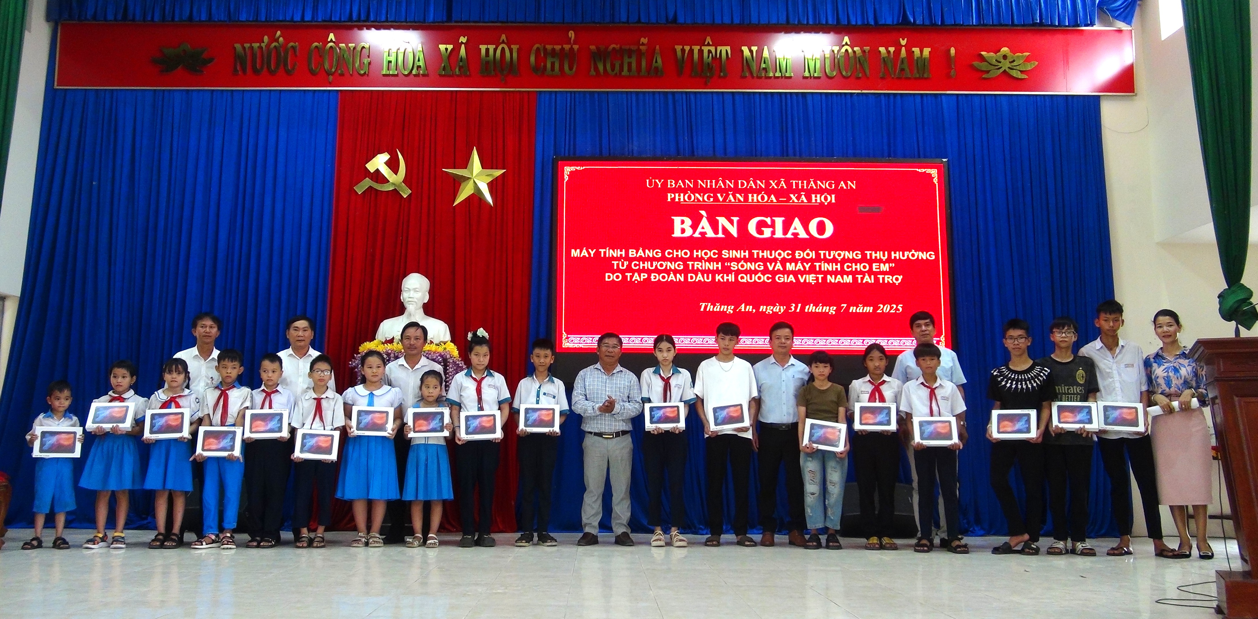 Đại diện lãnh đạo xã Thăng An cho biết, học sinh xã Thăng An được nhận máy tính đều có hoàn cảnh khó khăn nhưng có thành tích học tập tốt. Máy tính bảng được nhận hôm nay hết sức có ý nghĩa, đặc biệt là trong thời điểm các em học sinh chuẩn bị bước vào năm học mới 2025 - 2026. Qua đó sẽ tạo thêm cơ hội để các em có thêm điều kiện tiếp cận với công nghệ, rút ngắn khoảng cách trong học tập giữa các khu vực, vùng miền. Món quà không chỉ là thiết bị học tập mà còn là nguồn động viên, khích lệ tinh thần để các em tiếp tục vượt khó vươn lên, theo đuổi ước mơ học tập. Đồng thời yêu cầu nhà trường, gia đình và các em được nhận máy cần nêu cao ý thức bảo quản và sử dụng hiệu quả, đúng với mục đích chương trình đề ra.