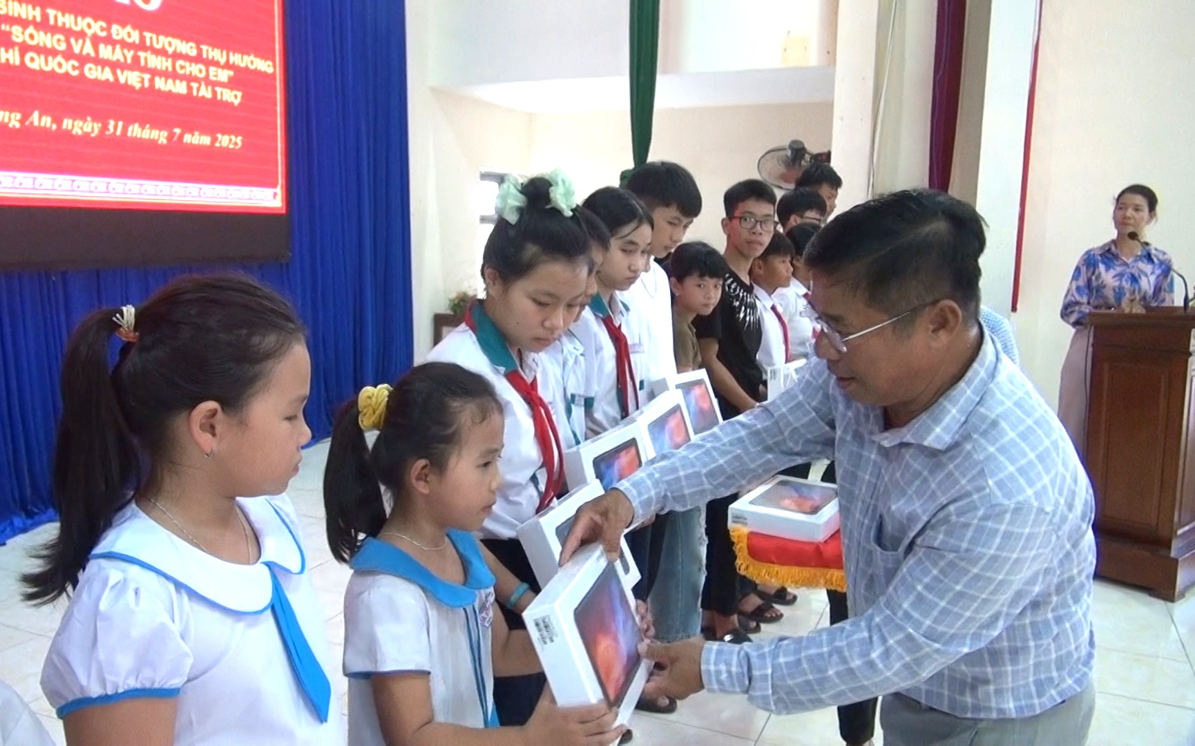 Chương trình “Sóng và máy tính cho em” của Bộ Giáo dục và Đào tạo trao 48 máy tính bảng cho học sinh khó khăn xã Thăng An.