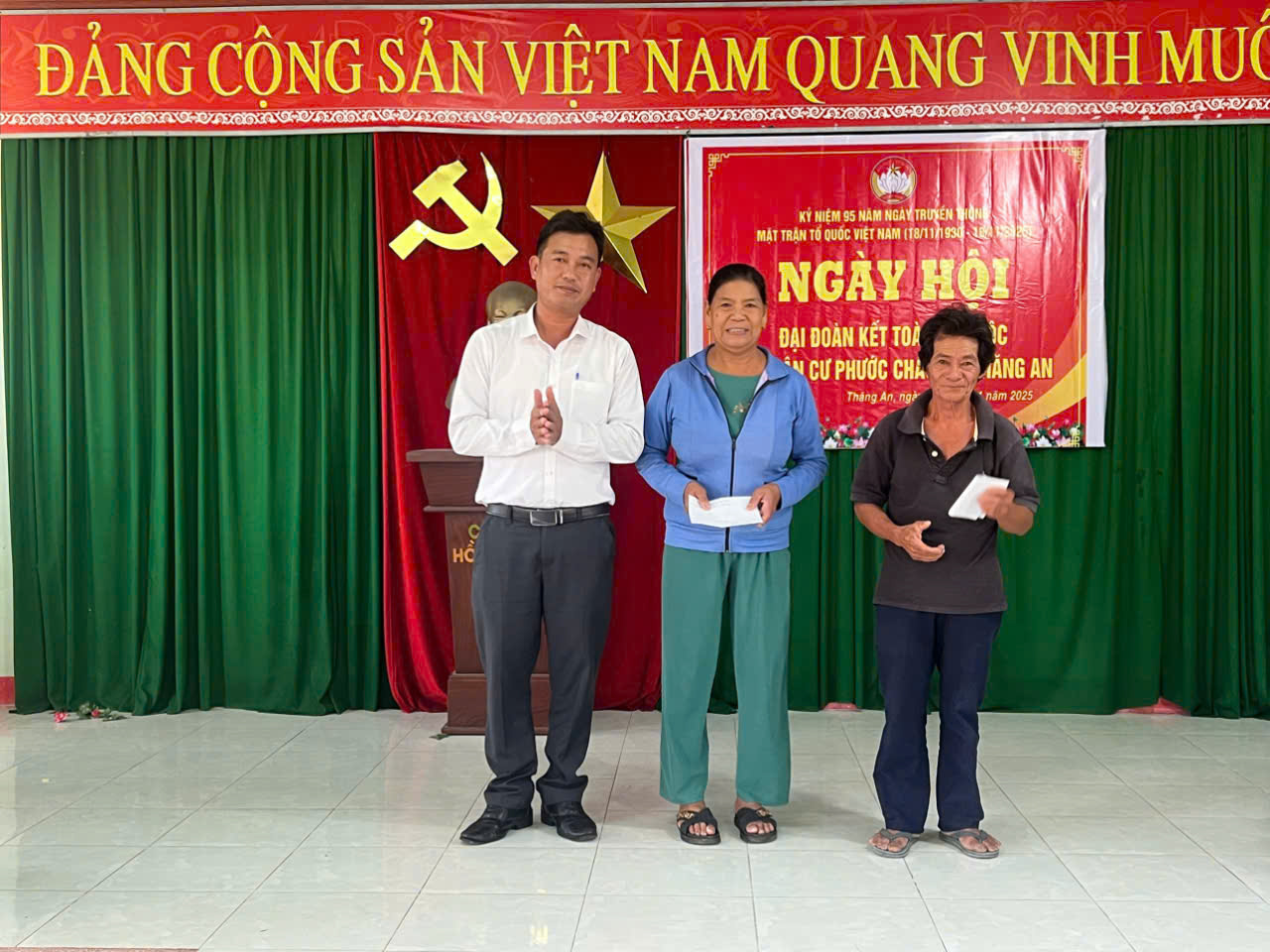 Ủy ban MTTQ Việt Nam xã Thăng An trao 38 suất quà cho hộ nghèo, khó khăn, góp phần giúp các gia đình có thêm điều kiện vươn lên trong cuộc sống. Bên cạnh đó, UBND xã, mạnh thường quân trong và ngoài xã trao nhiều suất quà cho các gia đình hoàn cảnh khó khăn, thiệt hại nặng nề do mưa lũ.