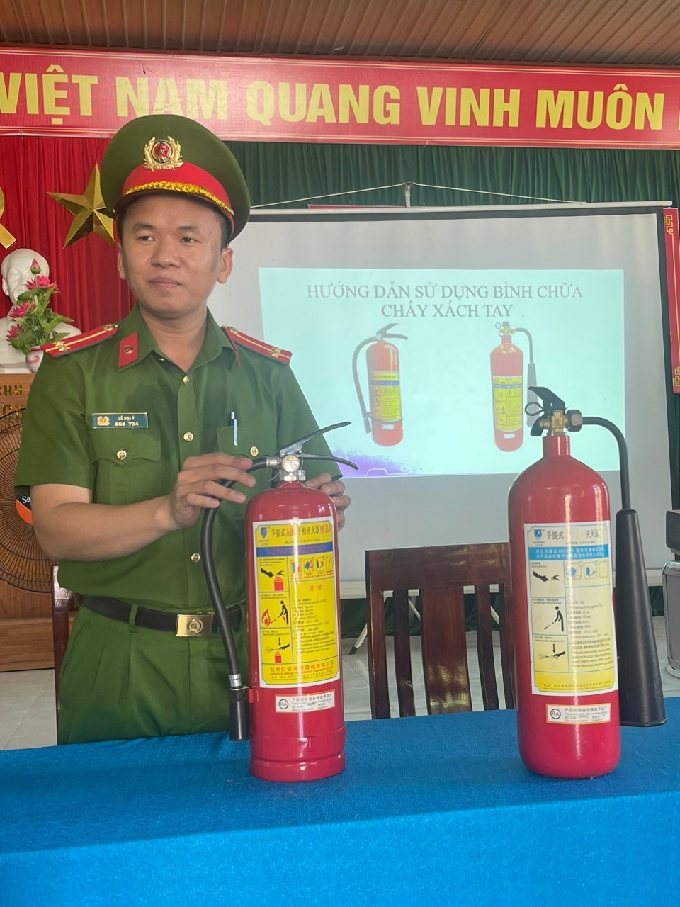 Tại hội nghị công an xã còn hướng dẫn cách dùng bình chữa cháy để dập lửa khi có sự cố cháy xảy ra